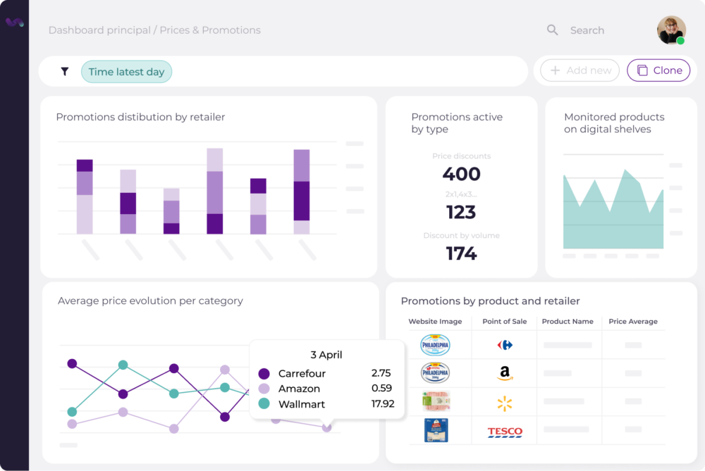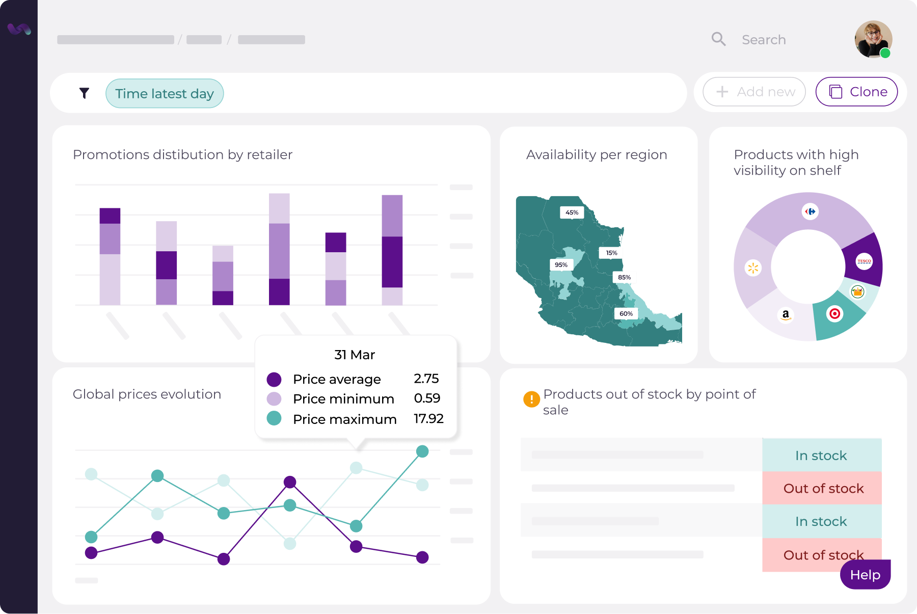 Analyze the market in real time with our platform. Monitor your distributors and competitors as well as brand positioning and trends. Make strategic decisions thanks to our leading technology to maximize your competitiveness, sales, margins and omnichannel image.